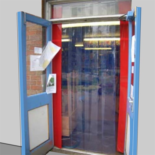 Child-safe free flow curtains for schools and nurseries using transparent colour PVC. Strips simply push onto the pegged hanging rails with no metal parts to cause injury if pulled down. The safe, cost-effective way to preserve heat whilst still allowing full visibility and easy access between classrooms, corridors and outside. Ideal for those wanting a more playful feel. Can also keep out weather, dust, flying debris and pests. Kit includes a set of QuickMount hanging rails and fully-prepped PVC strips. ALL SIZES NOMINAL. PRICES EX-VAT.